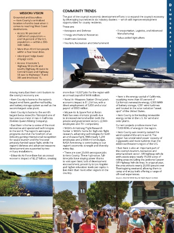 • Kern County is home to the nation’s • Naval Air Weapons Station China Lake’s supplying more than 60 percent of