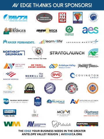 AV edge thanks our sponsors! n i r o f a P a de r i pe T i o S Southern California Pipe Trades s u l a thern C EST. Valley Realty THE EDGE YOUR BUSINESS NEEDS IN THE GREATER ANTELOPE VALLEY REGION | AVEDGECA.ORG