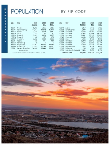 P P 93505 California City 14,667 14,972 15,414 93532 Lake Hughes 2,409 2,320 2,256