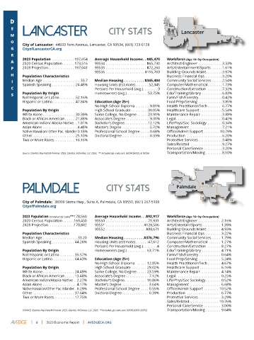 SOURCE: Claritas Pop-Facts® Premier 2023, Claritas, ©Claritas, LLC 2023. **Included zip codes are: 93550,93551,93552 Transportation/Moving . . . . . . . . 9.64%