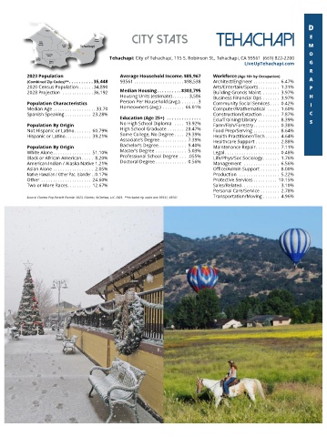 Source: Claritas Pop-Facts® Premier 2023, Claritas, ©Claritas, LLC 2023. **Included zip codes are: 93531, 93561 Transportation/Moving . . . . . . . 4.96%